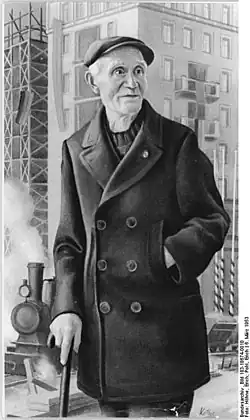 - Parteiveteran Gustav Schlichtholz (Kaseinfarbe, 147 × 97 cm)