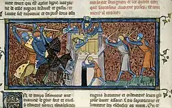Karls militärische Erfolge wurden in den historiographischen Quellen des Mittelalters nicht auf die Schlacht bei Poitiers von 732 reduziert.[130] Die 754 abgefasste sogenannte Mozarabische Chronik aus der muslimisch dominierten Iberischen Halbinsel berichtet über den Schlachtensieg von 732, dass die Europenses gegen die muslimischen Truppen siegreich gewesen seien. Der Eintrag gehört zu den frühesten Belegen für die Bezeichnung „Europäer“. Die Darstellung dieser Quelle entspricht allerdings nicht der Sichtweise der fränkischen Chronisten. Der Begriff bezog sich zunächst auf das Heer der Franken und Burgunder, nicht generell auf die Bewohner Europas.[131] Ulrich Nonn sah in der Ende des 8. Jahrhunderts verfassten Langobardengeschichte des Paulus Diaconus einen möglichen Grund dafür, dass diese Schlacht später als herausragend angesehen wurde. In dieser Historia Langobardorum gab der Geschichtsschreiber die Verluste der Sarazenen mit 375.000 Mann an; auf fränkischer Seite seien nur 1500 Mann gefallen.[132] Der Mehrzahl der karolingischen Geschichtsschreiber sind diese Zahlenangaben jedoch unbekannt. Regino von Prüm hat im 9. Jahrhundert die Angabe des Paulus Diaconus in seine Chronik übernommen. Bei Otto von Freising, dem wohl bedeutendsten Geschichtsschreiber des Mittelalters, wurde die Zahl in seiner 1143 bis 1146 verfassten Weltchronik wohl durch einen Abschreibfehler sogar auf 385.000 erhöht. Ab Mitte des 11. Jahrhunderts verblasste im Reich die Erinnerung an Karl Martells Sieg von 732. Für Marianus Scottus und Frutolf von Michelsberg war die Schlacht keinen Jahreseintrag wert.[133] Auch bei Gottfried von Viterbo und in der Sächsischen Weltchronik findet sich keine Erwähnung von Karls Sieg bei Poitiers.[134]