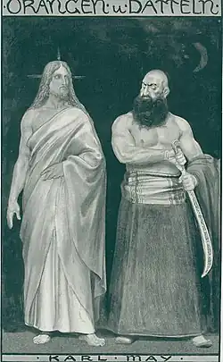 - ↑ Eckehard Koch: Zwischen Manitou, Allah und Buddha. Die nichtchristlichen Religionen bei Karl May. In: Dieter Sudhoff (Hrsg.): Zwischen Himmel und Hölle. Karl May und die Religion. Karl-May-Verlag, Bamberg, Radebeul, 2003, S. 162.