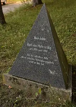 Sein Gut in der Hinterbrühl wurde nach dem Krieg von Hermann Gmeiner erworben und ab den Jahren 1957 ein SOS-Kinderdorf errichtet.[5] Seine Mutter und seine Schwester ließen dort 1961 eine Gedenkstätte für Karl errichten. Motesiczkys Gedenkstätte wurde im Sommer 2000 zerstört und mit Hakenkreuzen geschändet. 2007 wurde im Kinderdorf ein Stolperstein verlegt.[6]