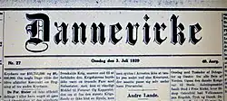 - ↑ „Dannevirke“, 5. September 1928, S. 2.