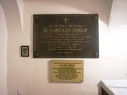 Nach dem Tod von Karl Heiler wählte die (damals) Königliche Freistadt Preßburg am 28. April 1889 den Domherrn Dr. Karl Rimely zu ihrem Stadtpfarrer. In dieser Eigenschaft machte er sich unter der Bevölkerung der Stadt sehr beliebt. Rimely betätigte sich auch als Wohltäter der Stadt, indem er das Nordportal des Preßburger St.-Martins-Doms auf eigene Kosten gründlich restaurieren ließ. Die bereits vom Bischof Heiler in Zusammenarbeit mit dem damaligen Bürgermeister der Stadt Heinrich Justi[6] begonnene Autonomie der römisch-katholischen Kultusgemeinde Preßburgs wurde fortgesetzt und erfolgreich abgeschlossen. In dieser Zeit betätigte sich Rimely auch als Kirchenhistoriker; er verfasste in lateinischer Sprache eine Monographie über das Preßburger Domkapitel (siehe unten), die in der Preßburger Druckerei Angermayer erschien.[7] 1892 wurde Rimely vom Papst Leo XIII. zum Prälaten ernannt.