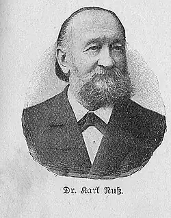 - ↑ Dr. Karl Ruß sen. †. In. Die gefiederte Welt. Magdeburg 1899, S. 314.