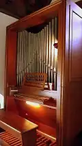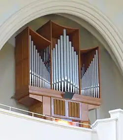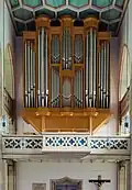 II/P 20 mit Pfeifenmaterial aus der Vorgängerorgel, 2001 renoviert und umintoniert, Orgel