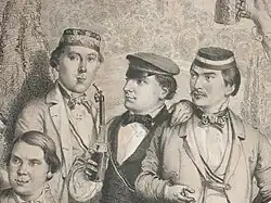 Karl von Neidhardt (Mitte) als Heidelberger Rhenane (Lithographie von Carl Schubart, 1852)