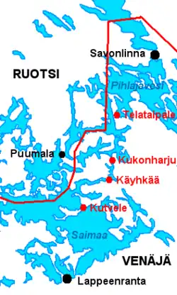 - ↑ Hier sind als Beispiele zu nennen: der „Stromschnellenbaron“ Carl Rosenkampff…der den Spiegel der karelischen Seen senkte und die Arbeiten am Saimkanal vorbereitete. In: Deutschland, Europa und der Norden: ausgewählte Probleme der nord-europäischen Geschichte im 19. und 20. Jahrhundert, Band 6 von Historische Mitteilungen: Beiheft, Historische Mitteilungen, Herausgeber Robert Bohn, Verlag Franz Steiner Verlag, 1993, ISBN 3-515-06413-3 books.google.de, Seite 21, Anmerkung 26, aufgerufen am 23. September 2017