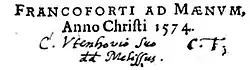 - ↑ Vgl. Gedicht vom 12. Mai 1590. In: Legionum Epistolarum Utenhovii. 1598, Blatt 75 links f.