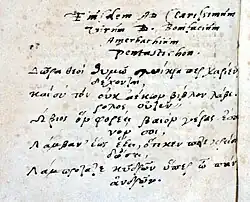 - ↑ Vgl. Ιω. Αὐράτου (Jean Dorat): Εἰς Καλλιμάχον Καρόλου τὸν Οὐθὲν-ὁ-βίος. In: Xenia. 1568, S. 119 (Digitalisat der Bayerischen Staatsbibliothek München).