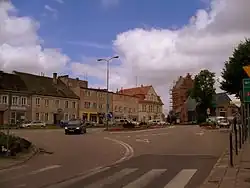 Hier kreuzen sich die Landesstraße 6 (Stettin–Danzig, ehemalige deutsche Reichsstraße 2, heutige Europastraße 28) und die Woiwodschaftsstraße 163 (Kołobrzeg (Kolberg) –Wałcz (Deutsch Krone), ehemalige Reichsstraße 124), und es besteht Anschluss an die Bahnstrecke Szczecinek–Kołobrzeg.