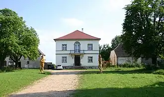 Das klassizistische Gutshaus wurde ungefähr 1818 erbaut. Von den jetzigen Bewohnern wurde ein Teil des Gebäudes als Kunstprojekt verwendet.[5]