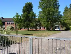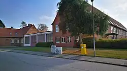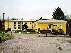 Im eingeschossigen unterkellerten Nebengebäude befanden sich der Speisesaal und die Küche. Den Abschluss bildete eine zweigeschossige Hausmeisterwohnung. Während des Krieges wurde das Nebengebäude im Bereich des Speisesaals durch einen Bombentreffer zerstört. Nach Entfernung des Trümmerschutts wurde auf der Kellerdecke eine Baracke als Ersatz für den verloren gegangenen Speisesaal errichtet. Der Abdruck des Giebels vom zerstörten Nebengebäude ist heute noch am Hauptgebäude sichtbar.