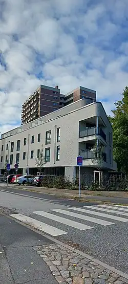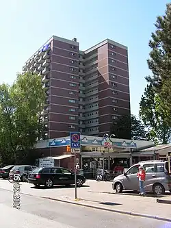 Zur Siedlung Karlshof gehört die 1956 geweihte ev.-luth. Kirche St. Stephanus nebst Kindergarten am Holzvogtweg/Ecke Dornierstraße.