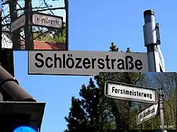 Im ursprünglichen (nordöstlichen) Teil erinnern die Straßennamen an die Gründerzeit (Schlözerstraße, Hofweg).