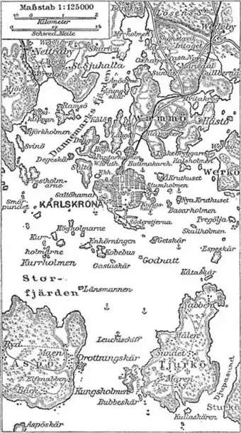 Karlskrona wurde 1679 als Flottenstützpunkt von König Karl XI. bzw. Admiral Hans Wachtmeister gegründet. Bereits ein Jahr später wurde Karlskrona zur Stadt erhoben. 1790 brannte ein Großteil der Stadt ab. Karlskrona entstand ursprünglich auf mehr als 30 Inseln und Inselchen, was sich auch heute noch auf das Stadtbild auswirkt.