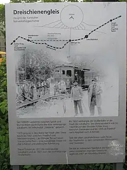 • Klaus Bindewald, Wolfram-Christian Geyer: Die Karlsruher Lokalbahnen. In: Manfred Koch (Hrsg.): Unter Strom. Geschichte des öffentlichen Nahverkehrs in Karlsruhe. Badenia Verlag, Karlsruhe 2000, ISBN 3-7617-0324-4 (Veröffentlichungen des Karlsruher Stadtarchivs 20).