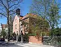 bezeichnet 1900 (Pfarrhaus) historisierender Klinkerbau mit Sandsteingliederung, hölzerner Dachreiter mit Glocke, besonders die Schauseite mit aufwendiger und abwechslungsreicher Fensterrahmungen der variierenden Formate, Gartenseite mit Standerker, ortsgeschichtlich und baugeschichtlich von Bedeutung. 09211901