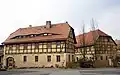 bezeichnet 1903 (Rathaus) Rathaus mit Toranlage und Einfriedung; markanter Verwaltungsbau mit Seitenrisalit, repräsentativem Portal und Uhrturm, in den Formen der Deutschen Neorenaissance und des Barock mit Jugendstilelementen, Risalit mit Schweifgiebel, heute unter anderem Ärztehaus, baugeschichtlich, stadtentwicklungsgeschichtlich und künstlerisch bedeutend. 09211902