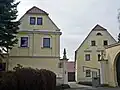 Wohnhaus (Nr. 15), Seitengebäude (Nr. 15a) mit nordöstlicher Pforte und rückwärtige Hofmauer eines ehemaligen Dreiseithofes Altcoschütz 15; 15a