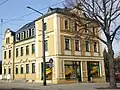 vor 1897 (Mietshaus) straßenbildprägender, repräsentativer Putzbau der 1890er Jahre mit Mansardwalmdach, zeittypisch historisierende Natursteingliederung, Lage und Eingangsbereich durch verbrochene Ecke und Mittelrisalit mit Turmaufsatz besonders hervorgehoben, baugeschichtlich und stadtentwicklungsgeschichtlich von Bedeutung. 09211895
