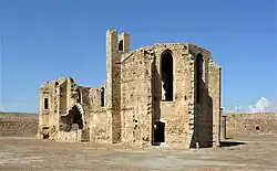 Der Kunsthistoriker Camille Enlart vermutet, dass die Karmelitenkirche etwa zu der Zeit errichtet wurde, als der Patriarch Peter Thomas dort lebte, also in der zweiten Hälfte des 14. Jahrhunderts. Enlart ordnet sie Vorbildern der südfranzösischen Gotik zu. Die Kirche Unserer Lieben Frau auf dem Berge Karmel bestand aus einem schlichten dreijochigen Langhaus, dem ein kürzeres Chorjoch angefügt war, das dreiseitig schloss. Das zweite Joch verfügte über später angefügte Seitenkapellen in der Art eines Querhauses. Das Chorgewölbe ist noch vorhanden, während die des Langhauses und der Kapellen eingestürzt sind. Die Kirche besaß eine reiche Ausmalung, die Enlart teilweise noch dokumentieren konnte. Davon sind nur noch geringe Reste erhalten.