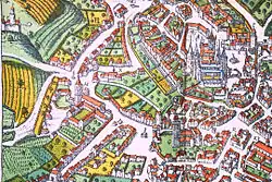 Karmelitenkloster auf einer Karte von Georg Braun und Franz Hogenberg