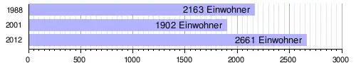 Im Hauptort lebten bei der Volkszählung 2012 2661 Einwohner in 431 Haushalten,[1] bei der Volkszählung 2001 1902 in 302 Haushalten[7] und bei der Volkszählung 1988 2163 in 375 Haushalten.[8]