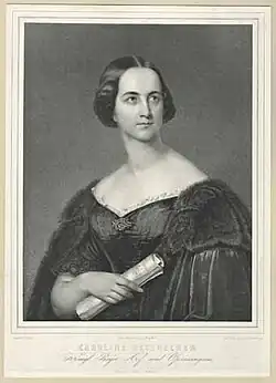 Karoline war das Kind von Johann Hetzenecker, dem Gerichtsverwalter des Grafen Maximilian von Lodron in Haag bei Freising und seiner zweiten Ehefrau Barbara Holderer. Sie hatte vier Halbgeschwister aus der ersten Ehe ihres Vaters. Dieser starb schon 1826, deshalb zog ihre Mutter mit ihr nach München, wo sie bei ihrer Großmutter aufwuchs. 1828 besuchte Karoline die Central-Singschule, wo sie auf Grund ihrer schönen Stimme vom Hofoperntenor Franz Xaver Löhle entdeckt wurde. Anschließend war Karoline Schülerin und Protegé des Königlichen Hofkapell- und Theatersängers Leopold Lenz, der ihr auch ein Engagement im Chor des königlichen Hof- und Nationaltheaters verschaffte. Mit seiner Hilfe debütierte sie bereits mit 16 Jahren am 23. April 1839 in Vincenzo Bellinis Oper Die Unbekannte (La straniera) an der Bayerischen Hofoper und feierte Erfolge als Pamina im Mozarts Die Zauberflöte.