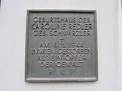 „Karoline Redler, geb. Schwärzler, am 8. 11.1944 in Wien gestorben als Opfer der Gewalt.“