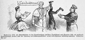 Trotz der Vorverständigung bestand Bismarck weiterhin auf einen unabhängigen Schiedsspruch. Andernfalls, äußerte er gegenüber Vertrauten, würde Deutschland zugeben, dass die Karolinen von jeher spanisch seien, die Einschätzung von 1875 demnach falsch gewesen sei. Am 29. September 1885 schlug Bismarck Papst Leo XIII. als Schiedsrichter vor, dessen Autorität das katholische Spanien kaum leugnen konnte. Zugleich sollte so das durch den Kulturkampf belastete Verhältnis zum Vatikan verbessert werden. Insgeheim wurde dem Papst mitgeteilt, Deutschland sei gegen Gewährung wirtschaftlicher Zugeständnisse zum Verzicht auf die Karolinen bereit.