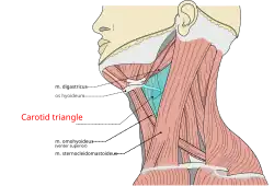 Bei dem Karotisdreieck oder Trigonum caroticum handelt es sich um eine Unterregion der vorderen Halsregion (Regio cervicalis anterior). Die anatomischen Begrenzungen dieses Dreiecks sind der Musculus sternocleidomastoideus, der Musculus omohyoideus sowie der hintere Bauch des Musculus digastricus. Bei gestrecktem Hals ist das Karotisdreieck unter dem Unterkiefer sichtbar.
