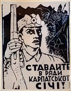 - ↑ Anton Petscherskyj: Не бути осторонь, як ллється братня кров: добровольчий чин Карпатської Січі від минулого до сучасності. In: armyinform.com.ua. 15. März 2023, abgerufen am 4. September 2024 (ukrainisch).