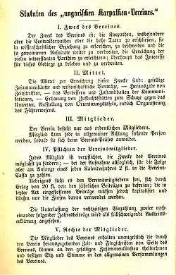 Bemerkenswert ist, dass der Karpathenverein der erste Bergverein war, welcher sich nicht mit den Alpen beschäftigte.