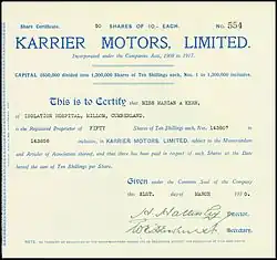 Die Wurzeln reichen zurück auf die Clayton and Company, die 1904 in Huddersfield gegründet wurde. Ab 1908 wurden Fahrzeuge unter dem Namen Karrier hergestellt, 1920 wurde der Name des Unternehmens in Karrier Motors Ltd umgeändert. Von 1919[1] bis 1935[2] meldete das Unternehmen 57 Patente (in GB, DE, ES und FR) zu Technologienentwicklungen für Bürstenwalzen, Kupplungen und Konstruktionen für Schienen- und Straßenfahrzeuge an.