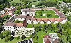Ansicht der Klosterkirche und rechts der Prälatenhof