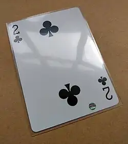 • Etwa 63 mm × 44 mm: Kleine Pokergröße, die in zwei Hälften geschnitten ist, etwas breiter und kürzer als der Mini-Euro, genannt TCG-Halbgröße.