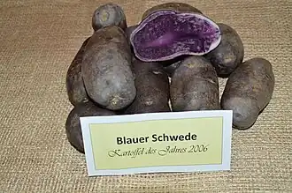 - ↑ Niedersächsisches Ministerium für Ernährung, Landwirtschaft, Verbraucherschutz und Landesentwicklung 2. Mai 2006: Blauer Schwede - Kartoffel des Jahres 2006
