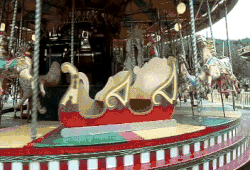 Ab 1880 etwa erhielten die Karussellpferde, basierend auf einer Erfindung der Landmaschinenfabrik Savage, die charakteristische Auf- und Abbewegung, die den Eindruck des Reitens verstärkt. In besonders eindringlicher und dramatischer Art wurde dieses Auf und Ab in Zusammenhang mit der unaufhörlichen Drehbewegung von Alfred Hitchcock in der Schlussszene des Krimi-Klassikers Der Fremde im Zug dargestellt.
