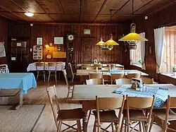 Es können 50 Betten und 140 Lagerplätze belegt werden. Neben Waschräumen mit lauwarmem Wasser gibt es kostenpflichtige Duschen mit heißem Wasser.[4] Im Winter ist die Hütte geschlossen, jedoch steht im Nebengebäude ein unverschlossener, beheizbarer Raum für Skitourengeher zur Verfügung.