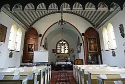 Das heutige Kirchengebäude wurde zu Beginn des 20. Jahrhunderts an Stelle einer Fachwerkkirche aus der Zeit nach dem Mittelalter im neogotischen Stil errichtet. Zum historischen Inventar gehörten bis 1945 ein barocker Kanzelaltar, eine Taufschüssel und zwei silberne Kelche aus dem 16. Jahrhundert (jüngeren Datums: Stifterin Catarina von Podewils), historische Glaswappen in den Renaissancefenstern der Stifterfamilien, darunter die Manteuffel und Damitz, sowie ein mittelalterliches Geläut, bestehend aus zwei Glocken. Zum Teil kann das Inventar auch heute noch besichtigt werden.