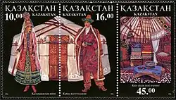 Endgültig angenommen wurde der Islam erst im 19. Jahrhundert, als Kasan-Tataren bei ihnen erschienen, die als Händler und Dolmetscher der russischen Zaren tätig waren. Anzumerken ist aber auch, dass der Sufismus sowie die zahlreichen schamanischen Praktiken in der kasachischen Kultur weiterhin verankert blieben. Aus dieser alten Religion (der Ethnologe Klaus E. Müller spricht hier von „Komplexschamanismus“ und meint damit jene Formen, die durch Berührungen mit anderen Religionen und benachbarten Agrargesellschaften eine komplexe Ritualkultur entwickelt haben)[12] stammt die Verehrung des Feuers, die noch heute eine wichtige Rolle spielt.[13] Kasachische Geisterbeschwörer waren Heiler und Wahrsager und konnten angeblich die weibliche Fruchtbarkeit beeinflussen.