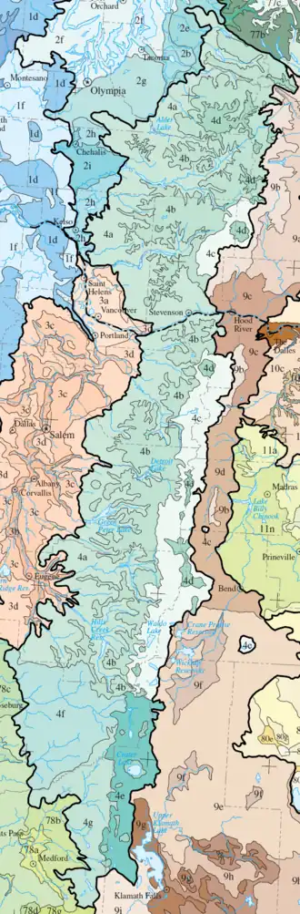 - ↑ a b c d e f g h D. Pater, S. A. Bryce, J. Kagan et al.: Ecoregions of Western Washington and Oregon. USGS (englisch).