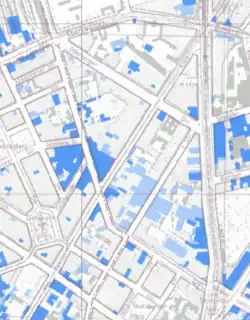 - ↑ Karte: Gebäudeschäden 1945. Senatsverwaltung für Stadtentwicklung, Bauen und Wohnen, Geoportal Berlin, fbinter
