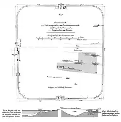 | Größe | 155–157 × 141–144 m (= 2,20 ha); bebaubare Innenfläche: 2,16 ha |