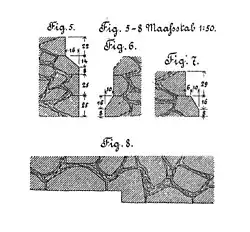 - ↑ Conrady hatte in seinem Grabungsbericht von nur zwei Schlitzen gesprochen, auf einer photographischen Aufnahme war aber auf der Westseite des Bauwerks ein dritter Schlitz zu erkennen.