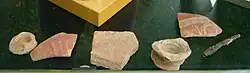 Zur Ausstattung der Principia gehörten auch Fresken, deren Reste an Putzbrocken entdeckt wurden. Dorow beschrieb, dass sich auf weißem Kalkgrund farbige Linien und Blätter erhalten hatten.[32]