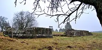| Wp 10/44 | „Hönen- oder Heunenbuckel“ | ![]() Lage ![]() Grundriss Rund 15 Meter nördlich des Steinturms befindet sich eine neun Meter durchmessende, rundliche Erhebung, die eine Holzturmstelle vermuten lässt, die aber bisher nicht nachgewiesen werden konnte.[9] |