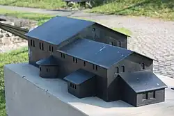 Bekannt ist auch, dass die Principia , die wie das gesamte Lager architektonisch einem Normplan folgten, eine große, als rechteckiger Querriegel vorgelagerte Mehrzweckhalle besaßen. Weiter wurde festgestellt, dass das stets im rückwärtigen Teil des Stabsgebäudes liegende Fahnenheiligtum eine halbrunde Apsis hatte. Da die Ausgestaltung des Heiligtums mit Apsiden in den Kastellen der germanischen Provinzen erst seit Mitte des 2. Jahrhunderts üblich geworden war,[22] überschneidet sich dieser bauliche Befund mit der dendrologische Einordnung der Bauhölzer aus dem Vicus, die ebenfalls in diese Zeit fallen. Auffallend sind die Ähnlichkeiten der Schirenhofer Principia zur Kommandantur im Kastell Unterböbingen. Es wurde vermutet, dass hier die gleiche Planungsgrundlage vorliegt.[8] Im Kastellareal konnten zudem Schmelztiegel zur Bronzeverarbeitung festgestellt werden.[23]
