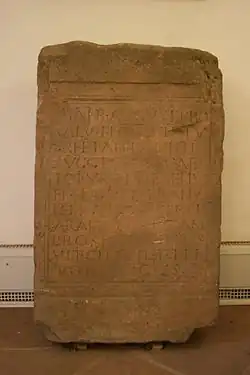 - ↑ a b Helmut Castritius, Manfred Clauss: Die römischen Steininschriften des Odenwaldes und seiner Randlandschaften (RSOR). In: Beiträge zur Erforschung des Odenwaldes und seiner Randlandschaften 3. Breuberg - Neustadt 1980, Nr. 27.