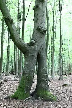 Die Kastenbein-Buche gilt als „Wunschbaum“: Besucher, die zwischen den zwei Stämmen hindurchgehen, dürfen sich etwas wünschen.