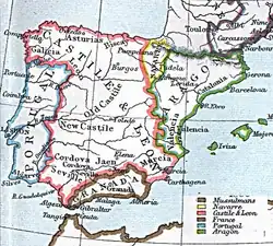 Im Jahr 1230 erfolgte die endgültige Vereinigung der beiden Königreiche zu Kastilien-León. Dieses Reich wird häufig als Krone von Kastilien oder einfach Kastilien bezeichnet. Im weiteren Verlauf der Reconquista erwarb es umfangreiche Gebiete und umfasste bei deren Abschluss (1492) den Norden, die Mitte und den Süden der Iberischen Halbinsel. Im Westen grenzte es an Portugal und im Osten an die Gebiete der Krone von Aragón und an Navarra.